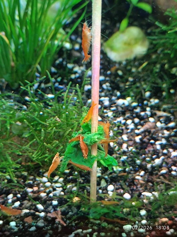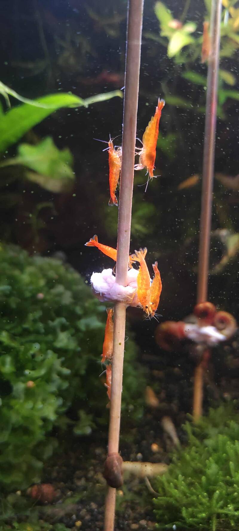 Cette crevette se reproduit facilement en environnement stable. Vous pourrez rapidement voir naître une colonie orange éclatante et harmonieuse, parfaite pour mettre en valeur votre bac.