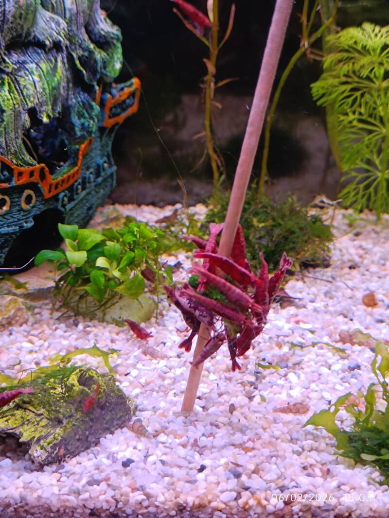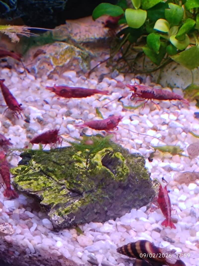 Cette crevette se reproduit facilement en environnement stable. Vous pourrez rapidement voir naître une colonie rouge éclatante et homogène, parfaite pour mettre en valeur votre bac.