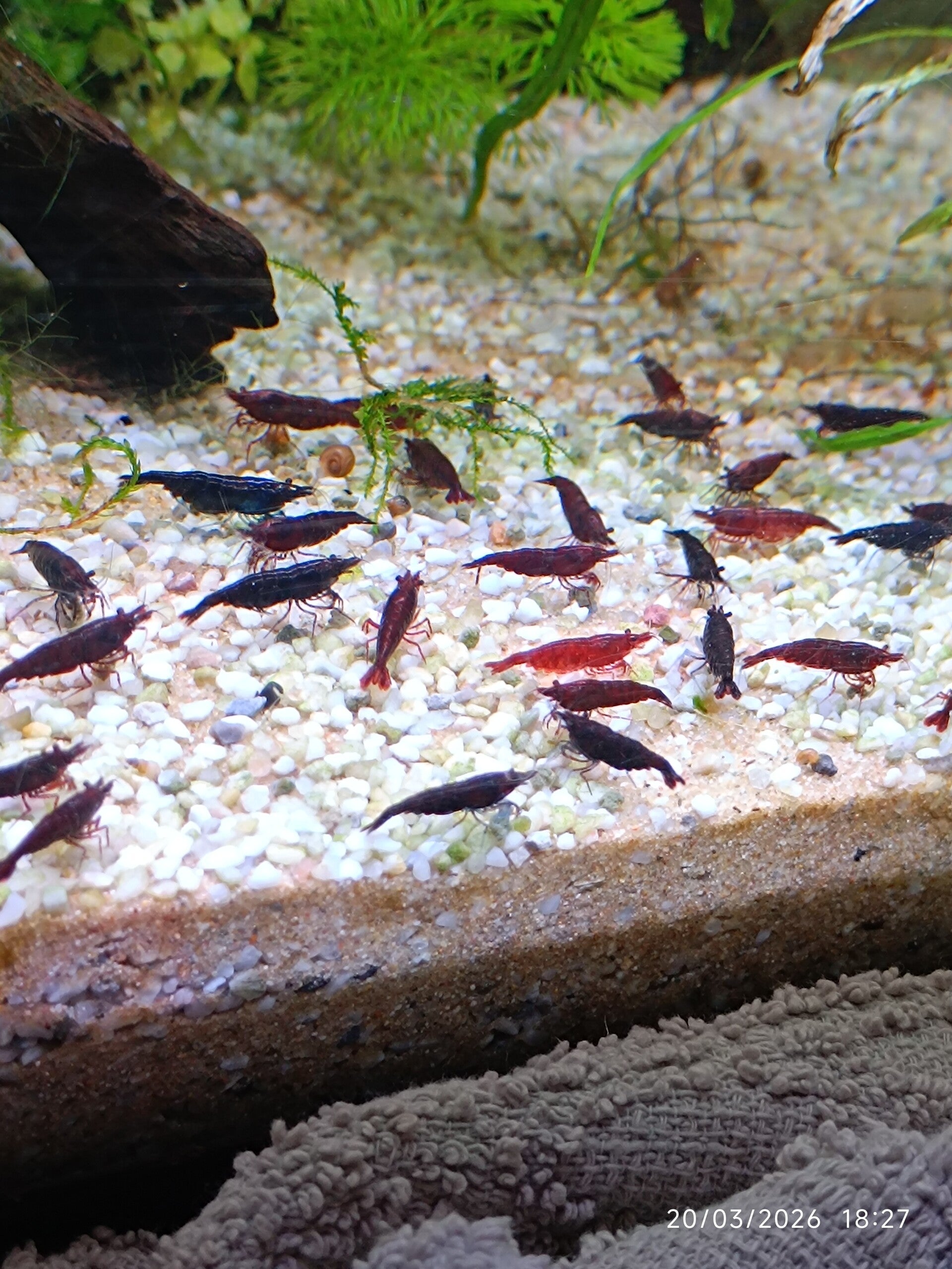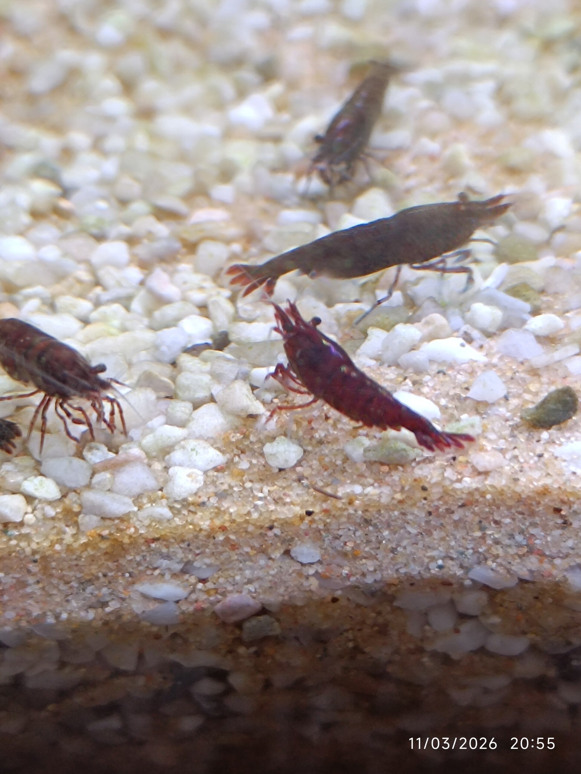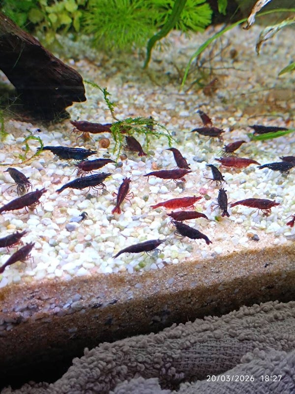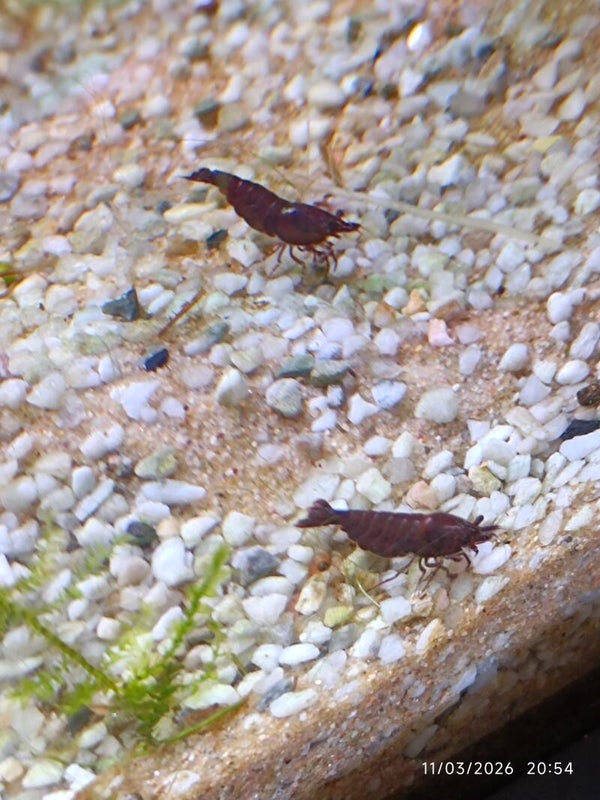 Cette crevette se reproduit facilement en environnement stable. Vous pourrez rapidement voir naître une colonie rouge intense et harmonieuse, parfaite pour mettre en valeur votre bac.