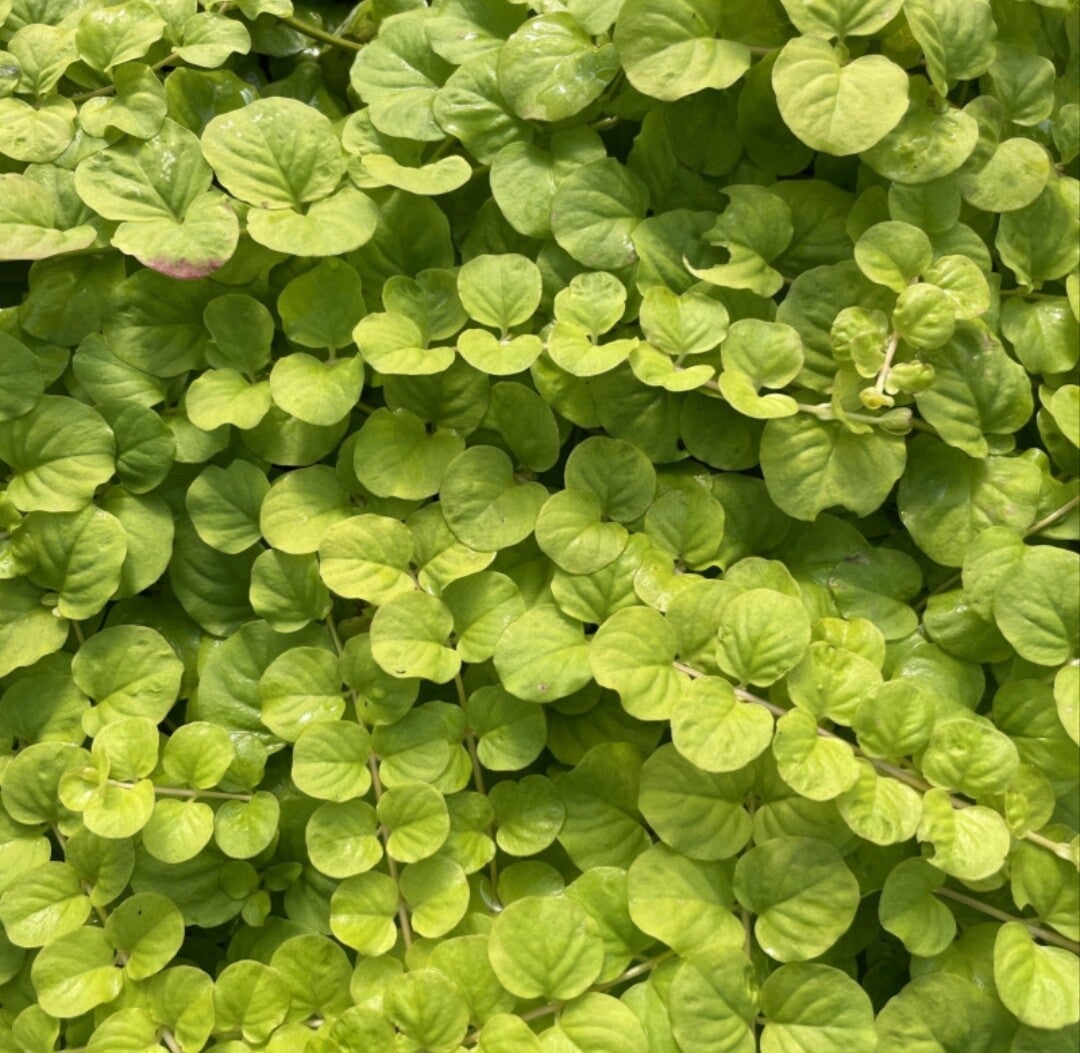 La Lysimachia nummularia (forme verte) est une plante rampante très appréciée pour son feuillage rond et vert vif.